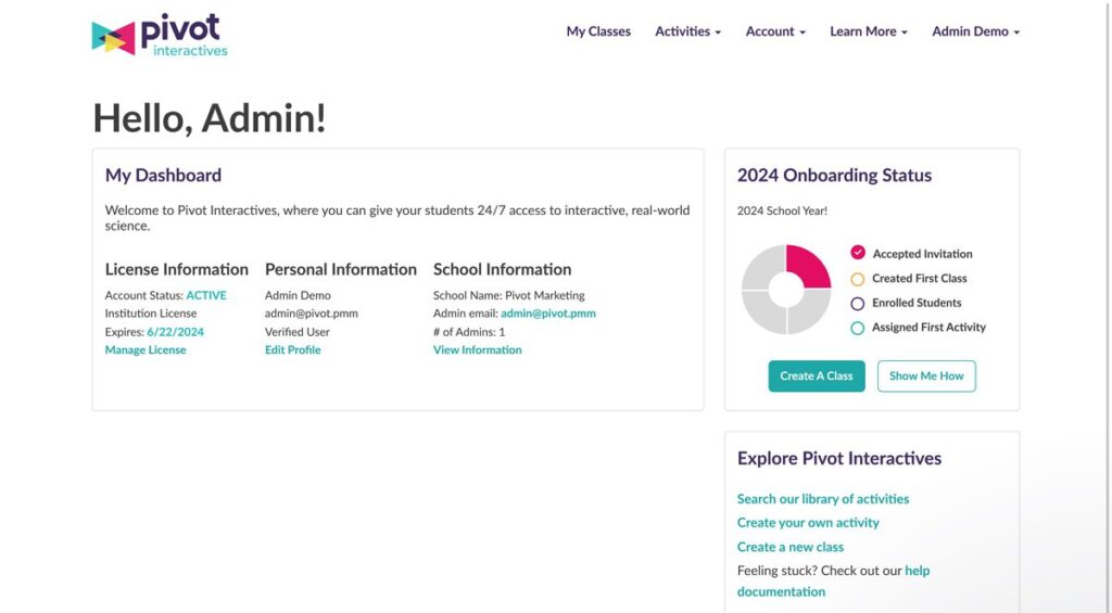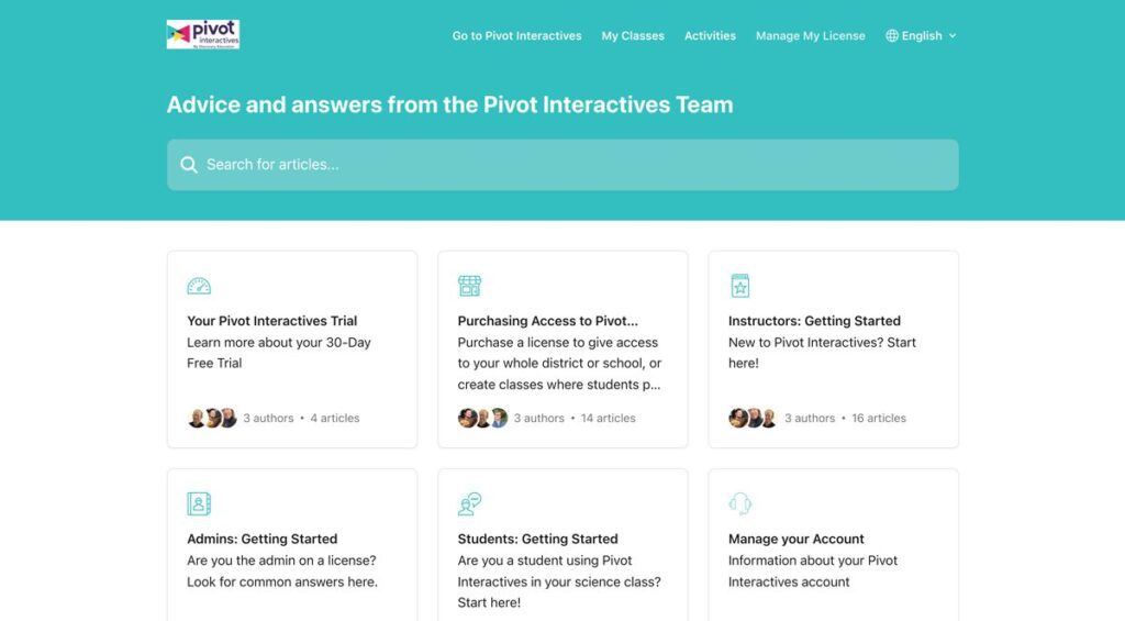 Flexible modules and delivery are designed to help your teachers get started with Pivot Interactives and have an immediate and ongoing impact in the classroom. On-demand learning and support resources are also available in the Help Center.
